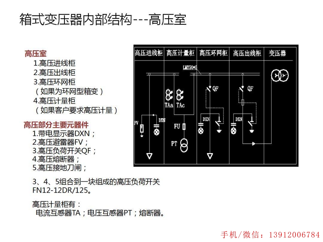 11、欧式箱式变压器(箱式变电站)高压输出柜的组成:1、欧式箱式变压器(箱式变电站)高压输出柜组成2、热缩套管,水平母线副线元件;3、地面行;4、所示。分行行;5、辅助材料;6、内阁